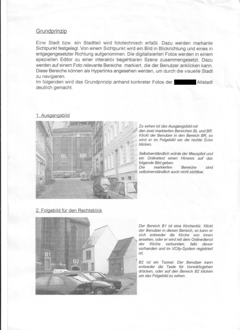 Unter dem Namen VCity (Virtual City) entwickelte ich 1996 das Prinzip eines virtuellen Stadtrundgangs, ähnlich dem heutigen google Streetview. Nun fand ich meine alten Aufzeichnungen, bei denen auch ein Grillspieß eine Rolle spielte.